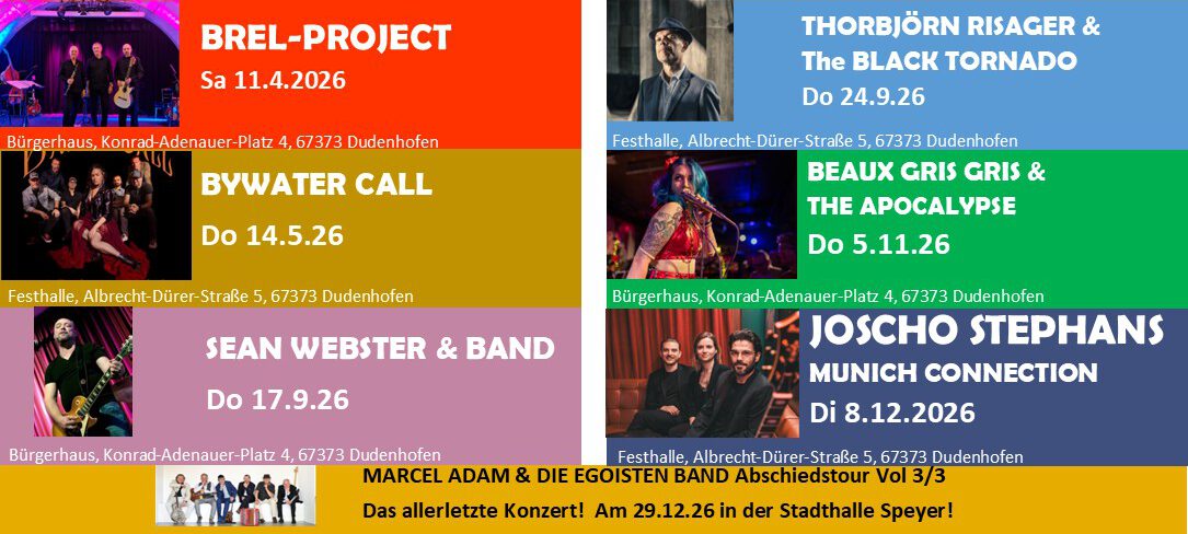Von Christian PlötzMarcel Adam gehört seit Jahren zu den wiederkehrenden Programmpunkten im Veranstaltungskalender des Kulturverein Dudenhofen. Letztes Jahr kündigte der beliebte deutsch-lothringische Sänger, Chansonnier und Entertainer an, sich von der Bühne langsam bis 2026 zurückziehen zu wollen. Das und das erfolgreiche neue Album „Egoiste“ trugen sicherlich ihren Teil dazu bei, dass das Konzert von Marcel […]