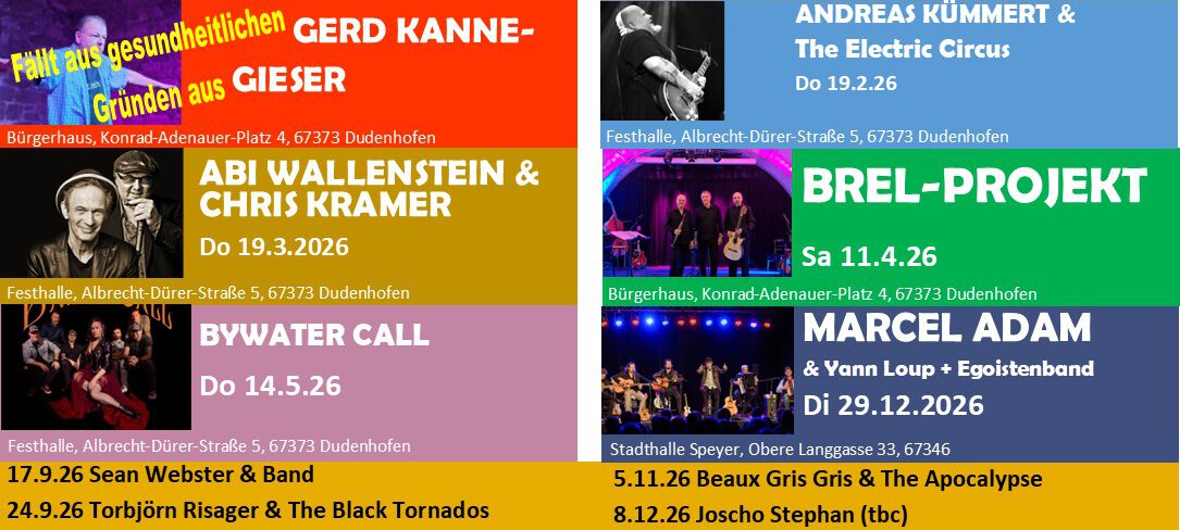 Kartenvorverkauf bei www.reservix.de oder:Spei‘rer Buchladen * Tourist-Info SP * Salon Gaby * BlütenzauberTelefonisch unter: 06232 651079